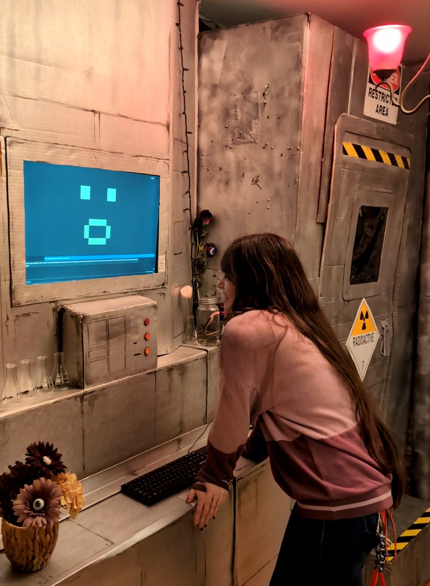 Physical Installation: The entire system is housed within a custom-built prop resembling a large retro mainframe computer, complete with period-appropriate switches, lights, and industrial aesthetic.